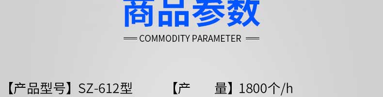 名稱SZ-612型全自動包子機 電源220V/380V 功率1.55KW 產量1800個/h 尺寸1720×640×1460(包括輸送帶 重量248 規格20-130g/個 其他