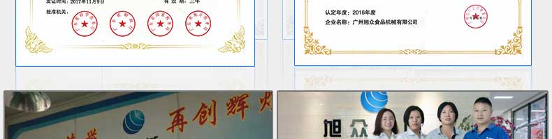 廣州旭眾食品機械有限公司是一家集科研開發,生產設計,營銷服務為一體的現代化生產企業。現代化生產車間,精湛制造技術,所產機械歷經市場重重考驗,不斷贏得海內外客戶的贊譽。