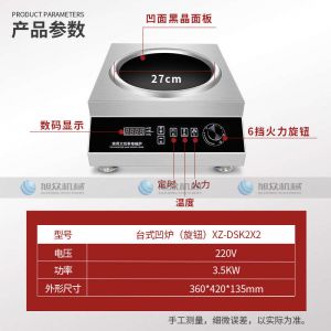 臺式凹爐(旋鈕)XZ-DSK2X2.,3500W爆炒大火力商用電磁爐。不銹鋼材質電磁爐采用加厚不銹鋼架構,抗沖擊,耐磨耐壓,穩定耐用,不易損壞,易于清潔。