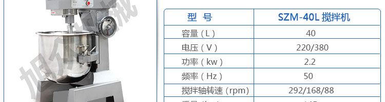 名稱SZM-40、50、60攪拌機系列 電源220/380V 220/380V 220/380V 功率2.2KW 2.6KW 3.5KW 產量 尺寸外形尺寸700*550*990mm 870*600*1170mm 900*620*1250mm 重量145kg 248kg 265kg 規格 其他