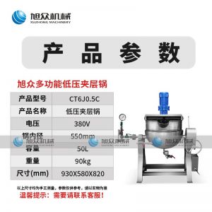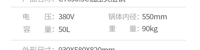 名稱50型夾層鍋 電源380v 功率 產量 尺寸930*580*820mm 重量90kg 規格 其他
