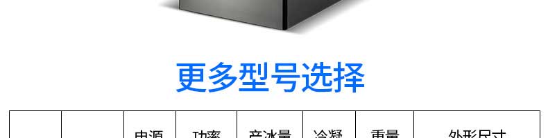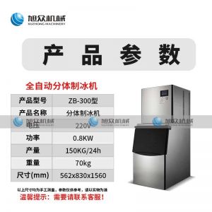 名稱300制冰機 電源220v 功率0.8kw 產量150kg/24h 尺寸562*830*1560mm 重量70kg 規格 其他