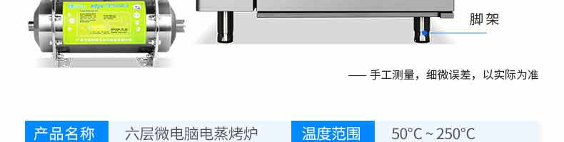 名稱萬能蒸烤箱 電源380V50HZ 功率11KW 產量溫度范圍:50C-250C 尺寸1030*1020*1080mm不同型號規格有所不同 重量200KG 規格 其他
